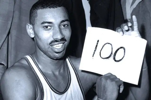 1961年11月15日,埃尔金·贝勒得到71分。三星期后12月8日,勇士对湖人:贝勒55投23中63分31篮板7助攻;张伯伦62投,31罚15中,得到78分43篮板1助攻——投了62球,就助攻一次。